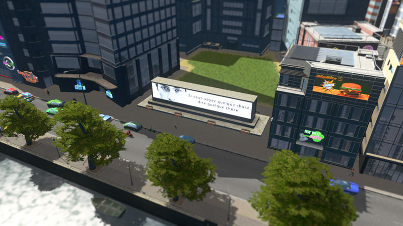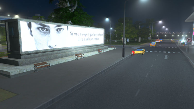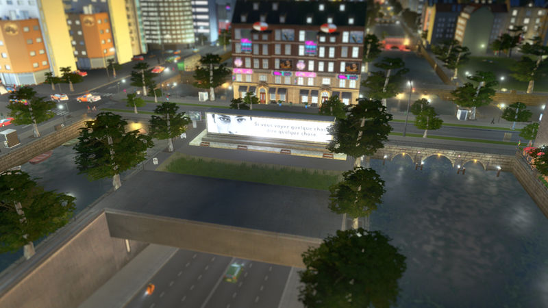 These concrete tv advertisements are based on the large LED screens found at Tienanmen Square in Beijing, where they are used to display video advertisements and messages. And they can play a role in your city too, adding a somewhat more realistic yet futuristic ambience and a bit more character. I recommend placing these sparingly in highly commercial areas or in areas with large flat expanses of concrete (like the plazas that come with the game.) This screen is oriented parallel to the road, for situations where you may want to place an ad facing the street, but five other ads are available which are oriented perpendicular to the street if you’d so prefer. Please rate up this asset if you enjoy using it, and be sure to check out the other assets in this set!