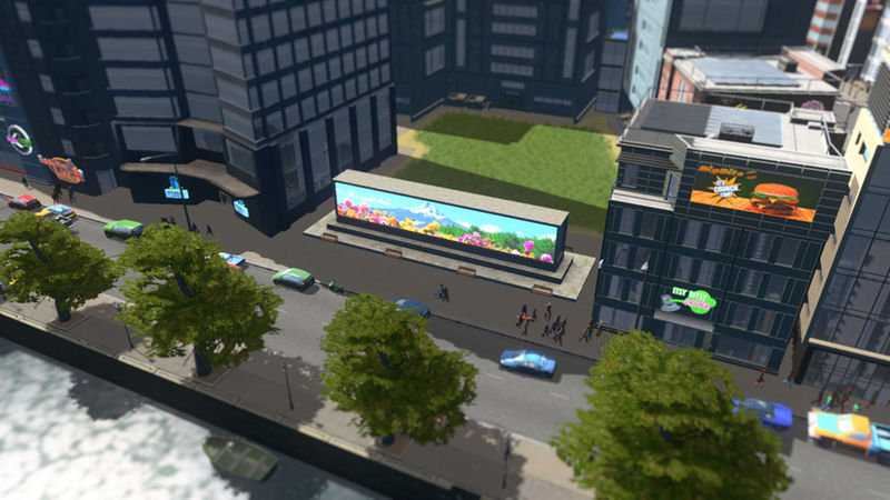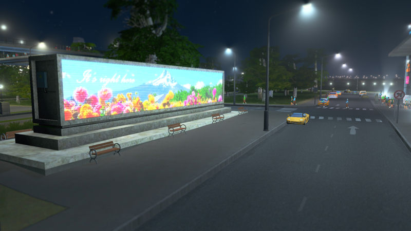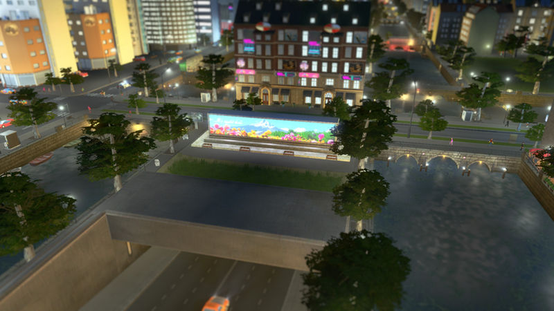 These concrete tv advertisements are based on the large LED screens found at Tienanmen Square in Beijing, where they are used to display video advertisements and messages. And they can play a role in your city too, adding a somewhat more realistic yet futuristic ambience and a bit more character. I recommend placing these sparingly in highly commercial areas or in areas with large flat expanses of concrete (like the plazas that come with the game.) This screen is oriented parallel to the road, for situations where you may want to place an ad facing the street, but five other ads are available which are oriented perpendicular to the street if you’d so prefer. Please rate up this asset if you enjoy using it, and be sure to check out the other assets in this set!