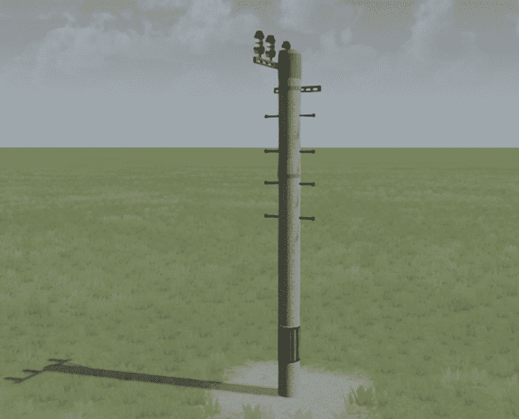 コンクリート製の電柱です。発電はしませんが、給電エリアを持っているため、並べると電気を遠くへ伝えることができます。