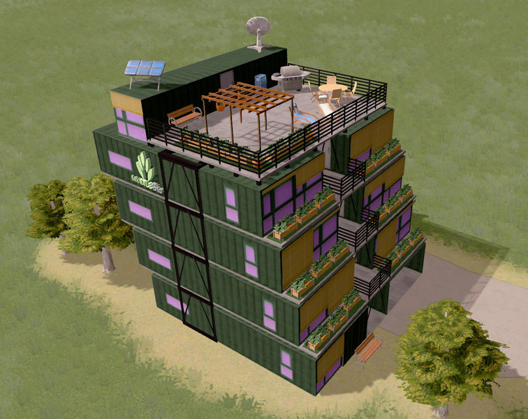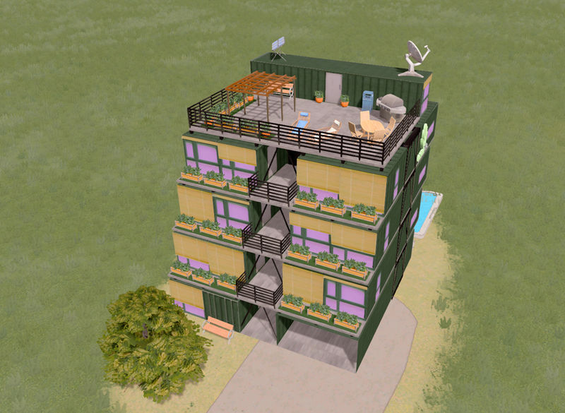 Too many containers in your city? turn it into a flat and GO GREEN! Inspired by the real container flat located in France, this building is 3 storeys high and has its own green rooftop garden for barbeque and a swimming pool! I hope you guys will enjoy this and more containers flat will be coming to you!
