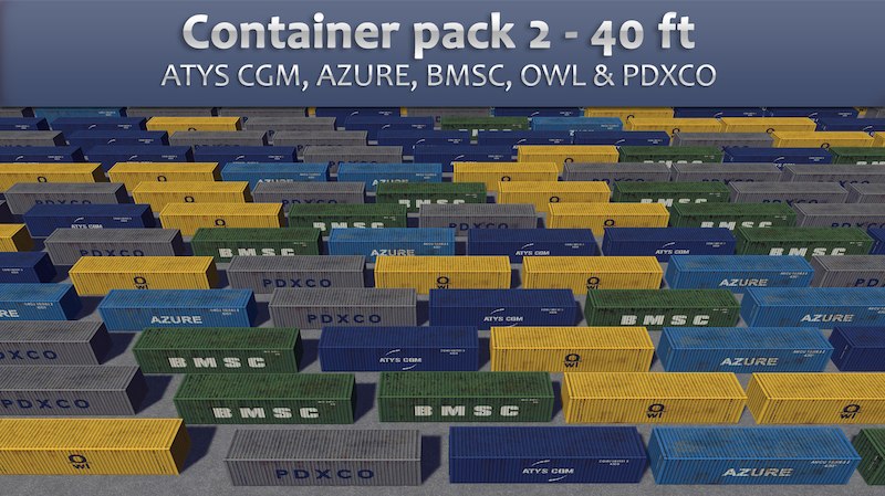 A pack of 40 ft containers including 5 variations of shipping brands, including ATYS CGM, AZURE, BMSC, OWL and PDXCO.