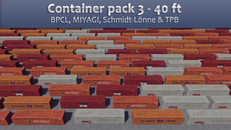A pack of 40 ft containers including 4 variations of shipping brands, including BPCL, MIYAGI, Schmidt-Lönne and TPB.