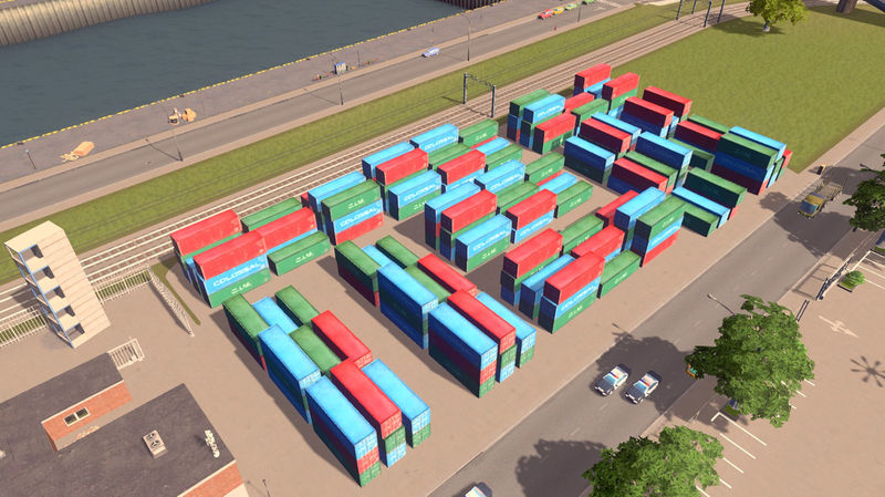 I really hate how props disappear when you zoom out, so I grabbed the container stacks from the cargo train station and turned them into two plop anywhere buildings. Nothing fancy at all. I didn’t put any props down or give them stats, but I figured someone out there might want them as buildings so they’re there when you zoom out. ?