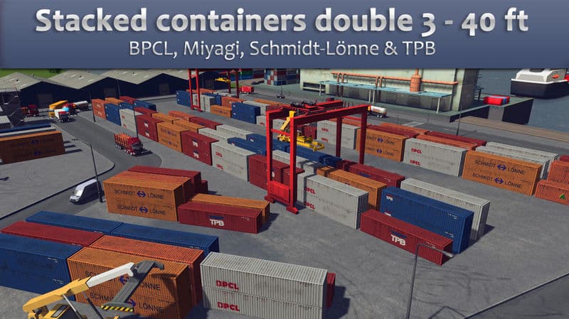 A pack of 2 stacked 40 ft containers with 5 variations of 4 brands, including BPCL, Miyagi, Schmidt-Lönne and TPB.