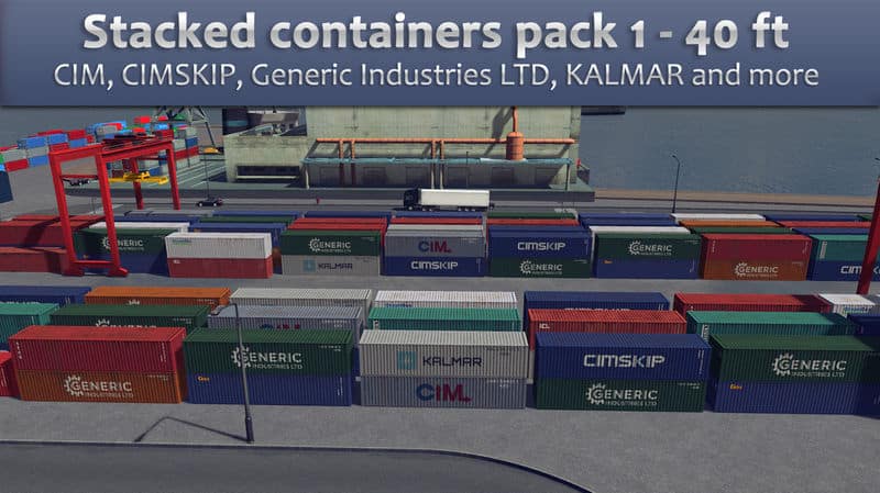 All the variations of this pack, the large container stacks 1 and the pack 5 mix share textures, so make sure you have texture sharing enabled in the options of the Loading Screen Mod. This is more efficient than having several smaller textures for the different variations, so no need to worry about the filesize unless you’re running the game on a potato. ?