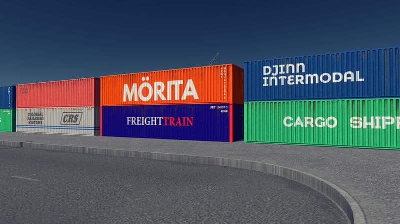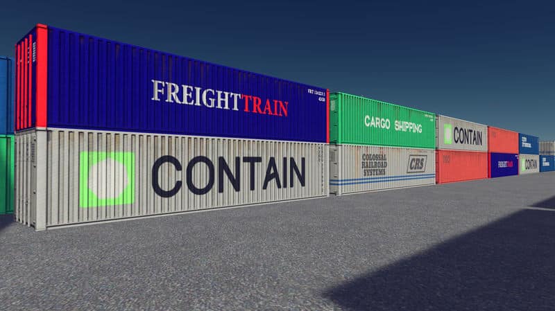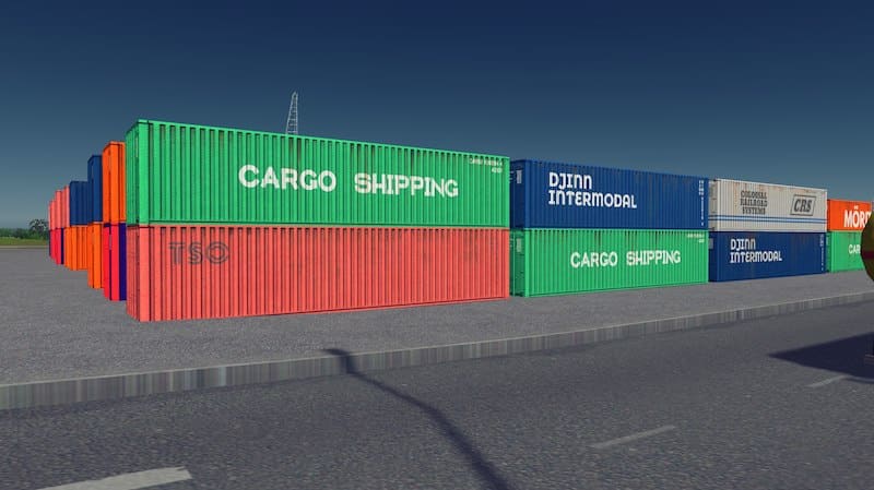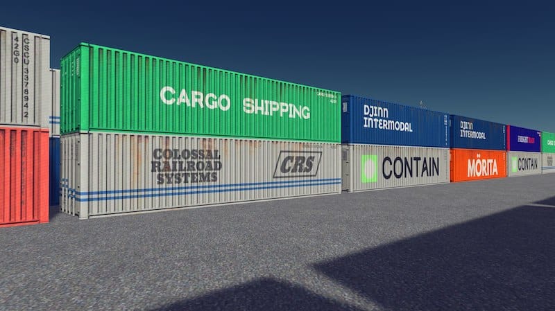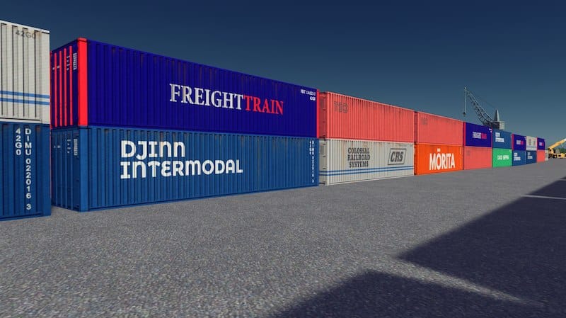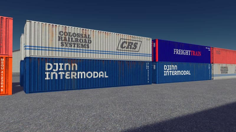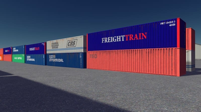 A pack of 2 props containing 10 variations each. The stacks are 2 containers tall with a mix of containers with all your favorite brands by bsquiklehausen. Visit his workshop for freight trains and props matching these containers.