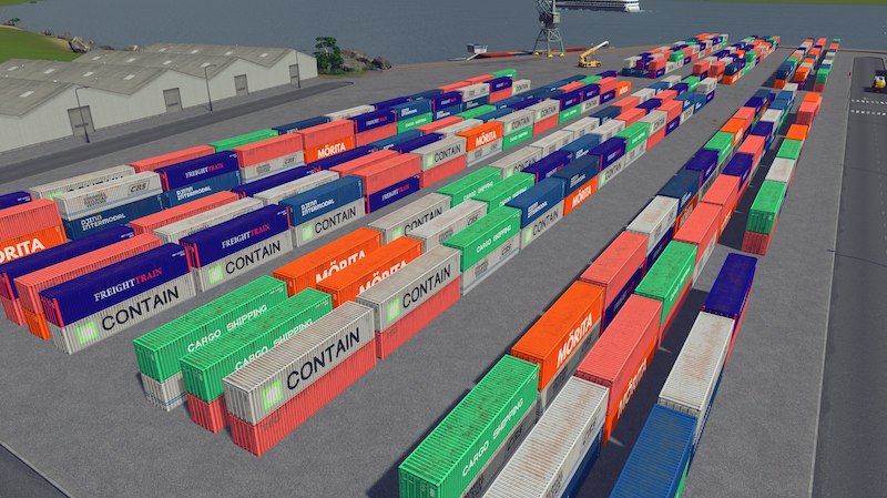 These asset takes advantage of random prop feature added to the asset editor in patch 1.6 and will cycle through the 10 variations. With mods such as Prop Line Tool you can drag lines of containers and automatically get variation.