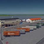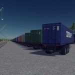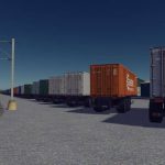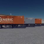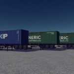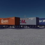 Containers on a trailer containing 5 variations of 4 brands, including Cargo in Motion (CIM), CIMSKIP (by Lee Towers), Generic Industries Ltd. (by Beardmonkey) and a new giant in the shipping business KALMAR.