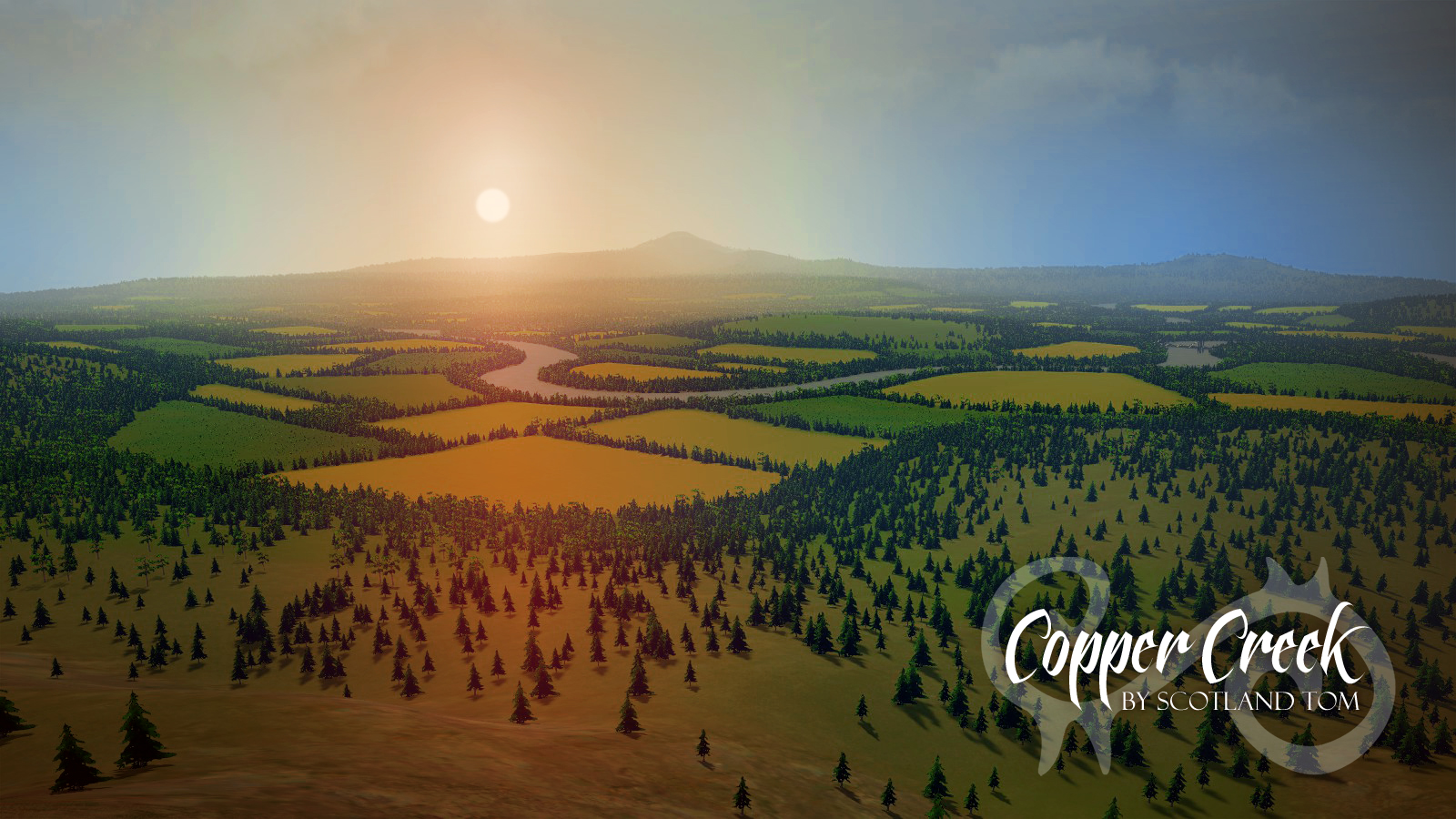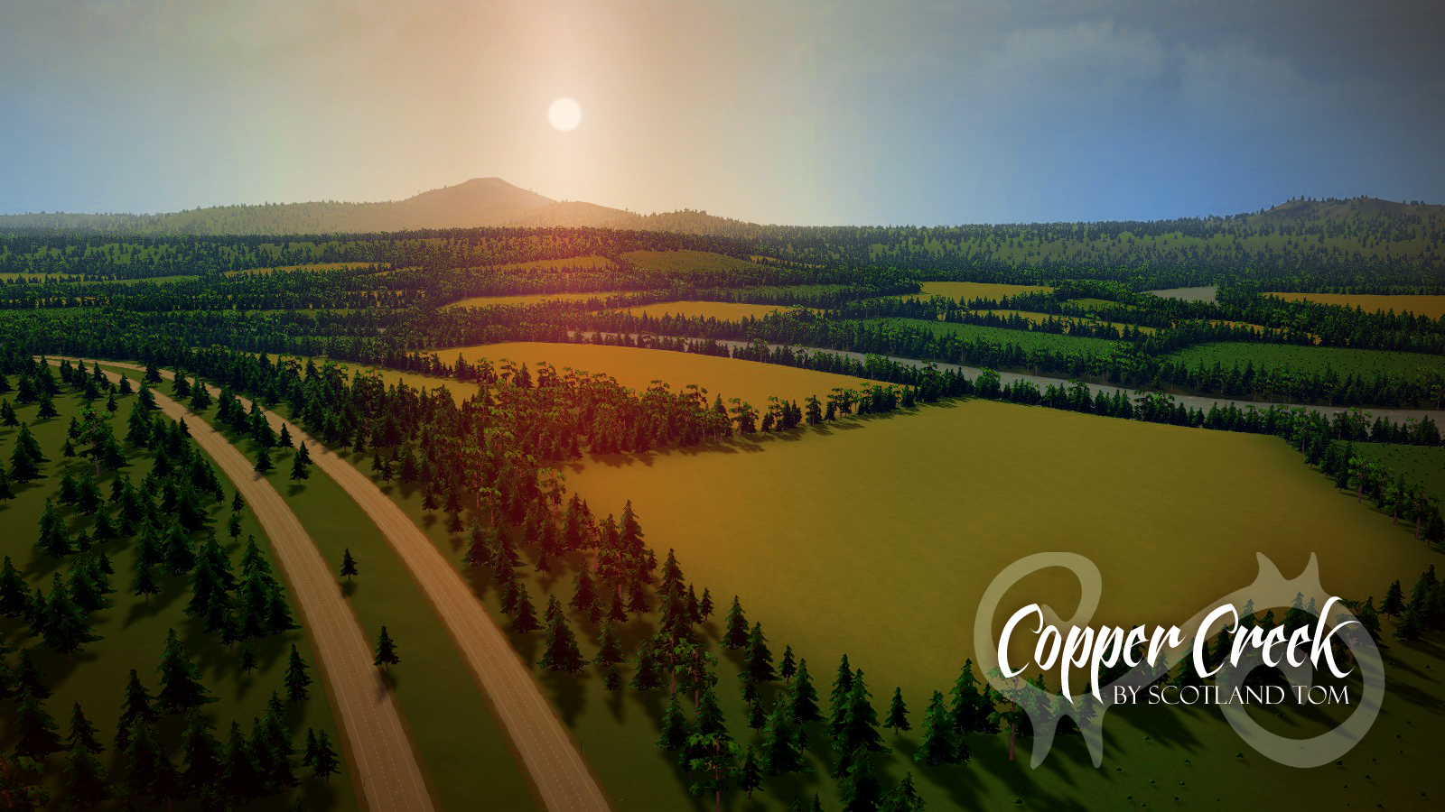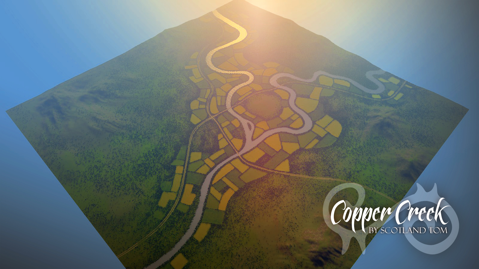 Copper Creek is a map made specifically for those who want a bit more room to spread out and expand their city. It’s not flat, but the gentle hills of Copper Creek are very friendly to an open, free-form building style. The terrain still offers plenty of features and contours to follow while making a more organic looking city. Copper Creek also offers some impressive looking farmland. The goal here was to create an aesthetically pleasing agricultural region that could even serve as a guide for those curious about how to make good looking farm fields in the game.