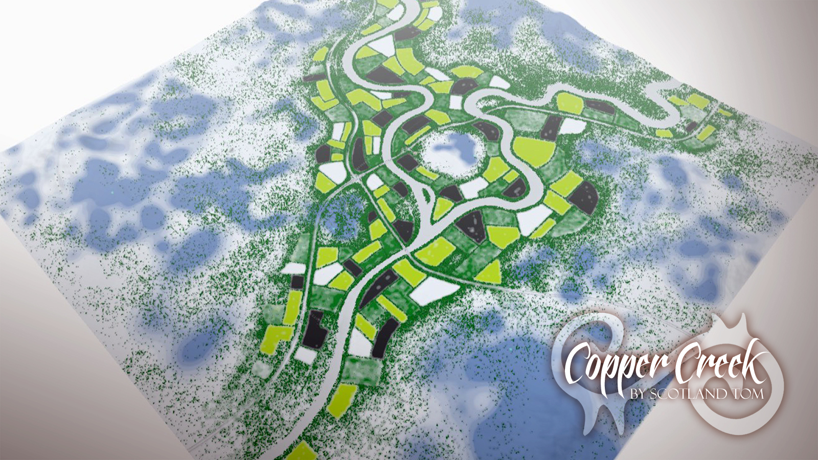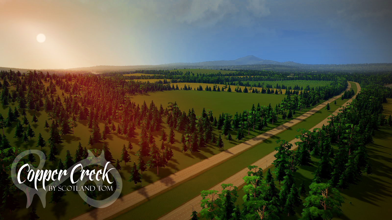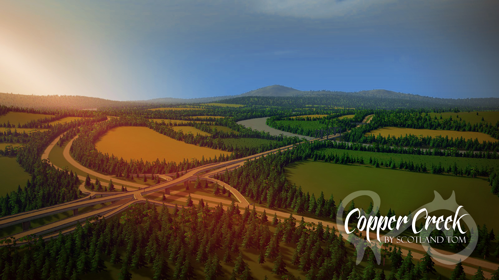 Copper Creek is a map made specifically for those who want a bit more room to spread out and expand their city. It’s not flat, but the gentle hills of Copper Creek are very friendly to an open, free-form building style. The terrain still offers plenty of features and contours to follow while making a more organic looking city. Copper Creek also offers some impressive looking farmland. The goal here was to create an aesthetically pleasing agricultural region that could even serve as a guide for those curious about how to make good looking farm fields in the game.
