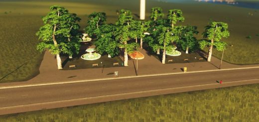 A corner park with built in pedestrian control for happy Cims that use the underground sidewalks to cross under the road so they do not block traffic…