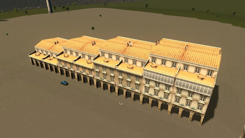 TIP: Use them between two roads, separated by 3 squares. The original ones have the main facade looking towards the City Hall, and the gallery facade towards harbor and sea. Look at the photos and inspire yourself!
