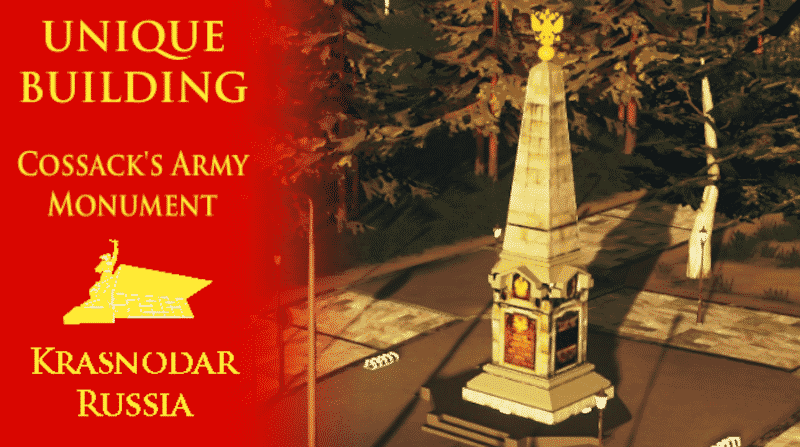 Ekaterinodar, the city Council has allocated for the construction of a monument to 5,000 rubles. The project was commissioned by Kuban well-known architect Vasily Andreevich Filippov. By 1896, the construction of the monument was not completed, and September 8-9, 1896, during the celebrations in honor of the 200th anniversary of the troops of city head V. S. Klimov was presented “in the smart folder” photograph of a model of the obelisk acting ataman of the Cossack troops J. D. Malham. Inauguration of the monument took place on 7 may 1897 and was accompanied by festivities.