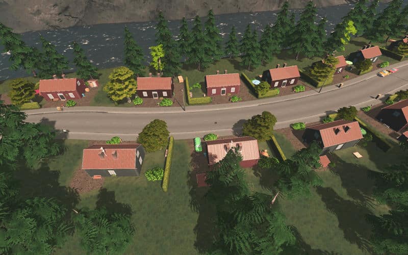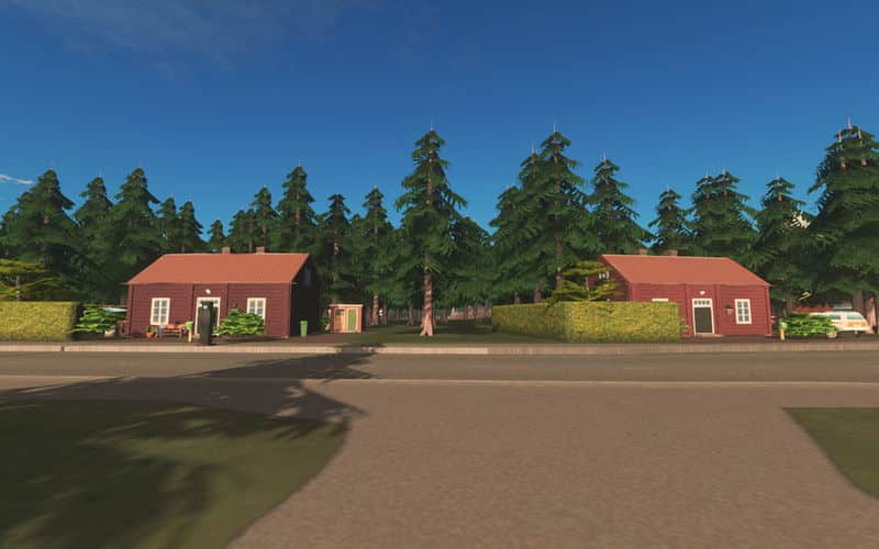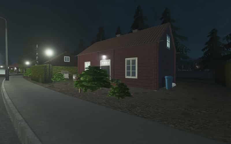Randomly appearing props and trees are included, and windows are lit up at night.