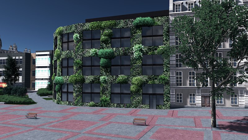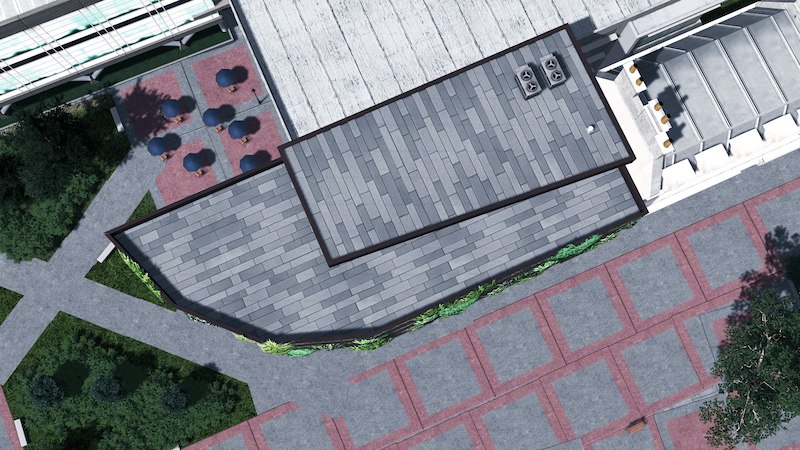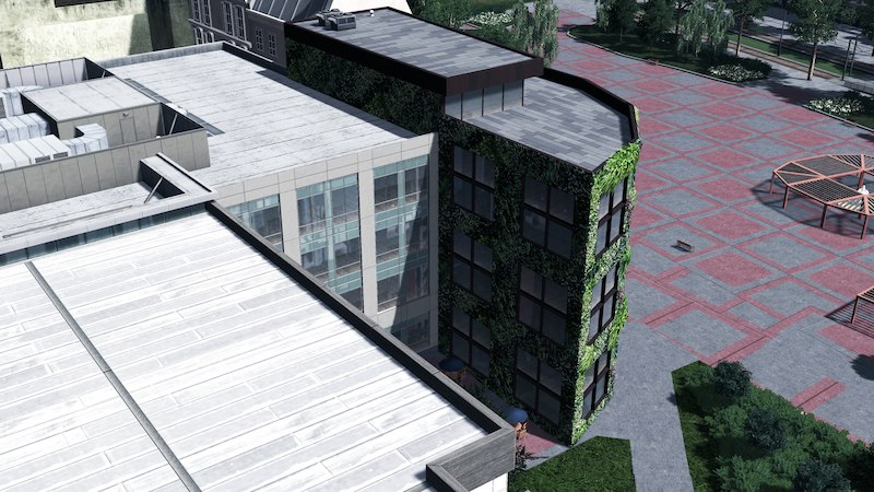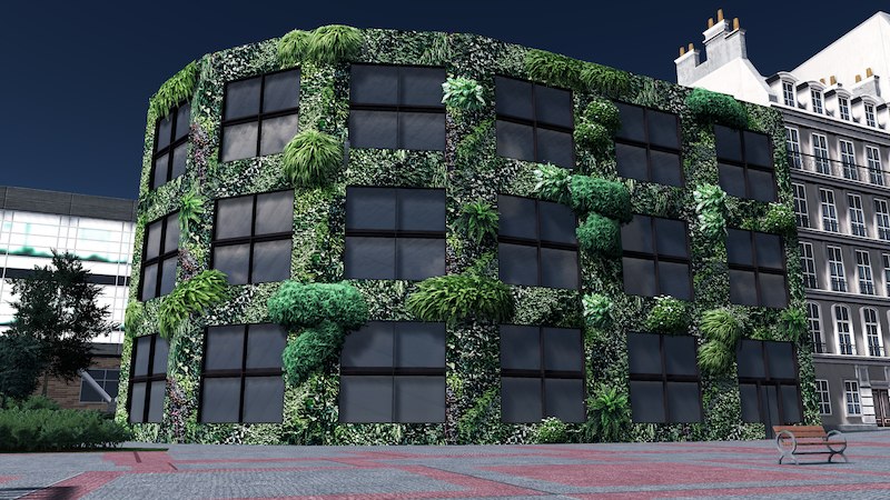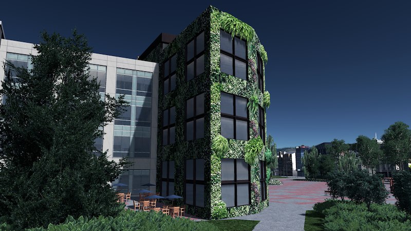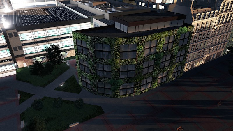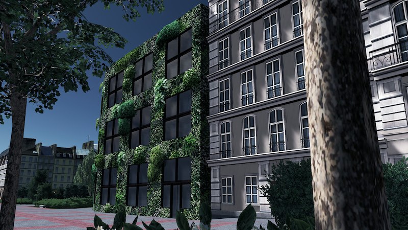 conceptual note: this building, inspired by a part of the Quai Branly Museum in Paris, had been on my radar for some time. In light of recent events, I found particularly fitting to finish this green building from Paris. Not to be taken too seriously.