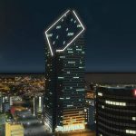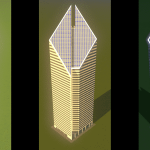 Formerly known as Smurfit-Stone Building. Located at the corner of Grant Park in Chicago, Illinois. This postmodern style building was designed by Sheldon Schlegman of A. Epstein and Sons and completed in 1984. With 41 floors, a max height of 575 feet/ 175 meters and its unique roof. It has been called the “Diamond Building.”