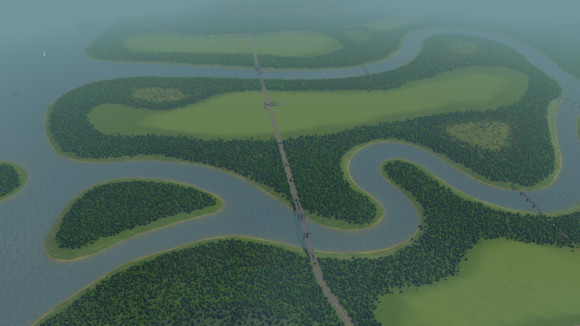 This map has a smooth coastline, a large flat central island for easy planning, and is surrounded by a large mountain range. Terrain is very smooth, forests are carefully placed. Along the coast are four small islands, suitable for villages, utilities or landmarks. All resources have four distinct locations.