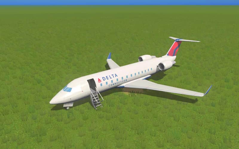 A model of a Bombardier CRJ-200 aircraft. This model has the door open and extended. The texture on the aircraft is that of Delta Connection.