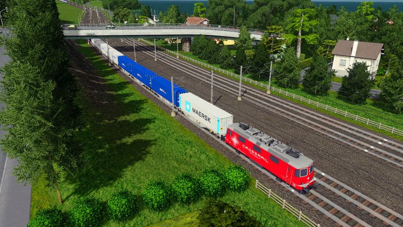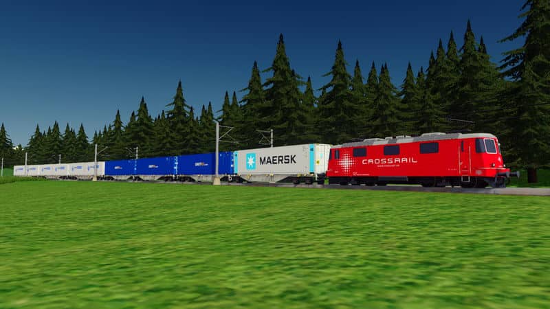 Crossrail Re 430 Electric Locomotive and Container freight wagon.