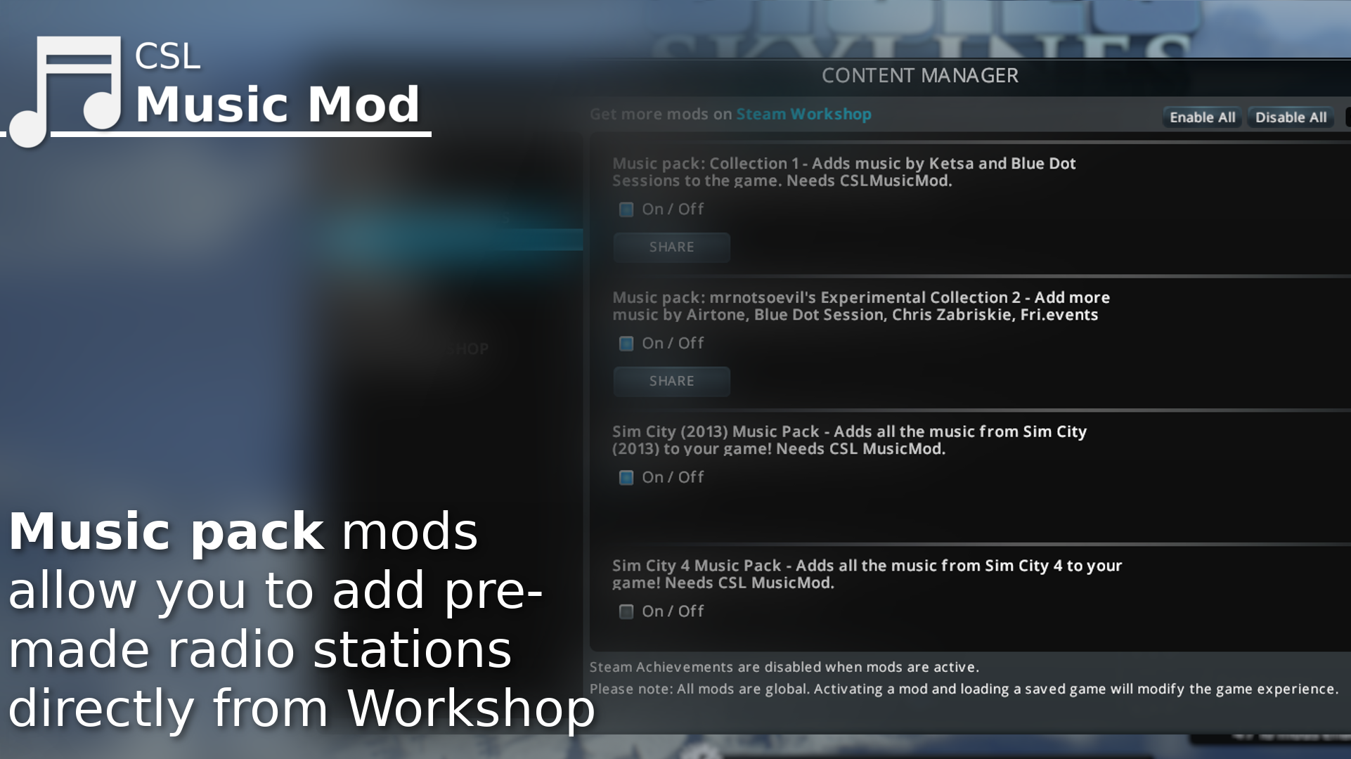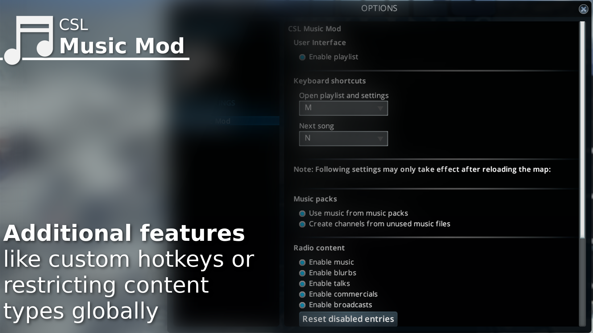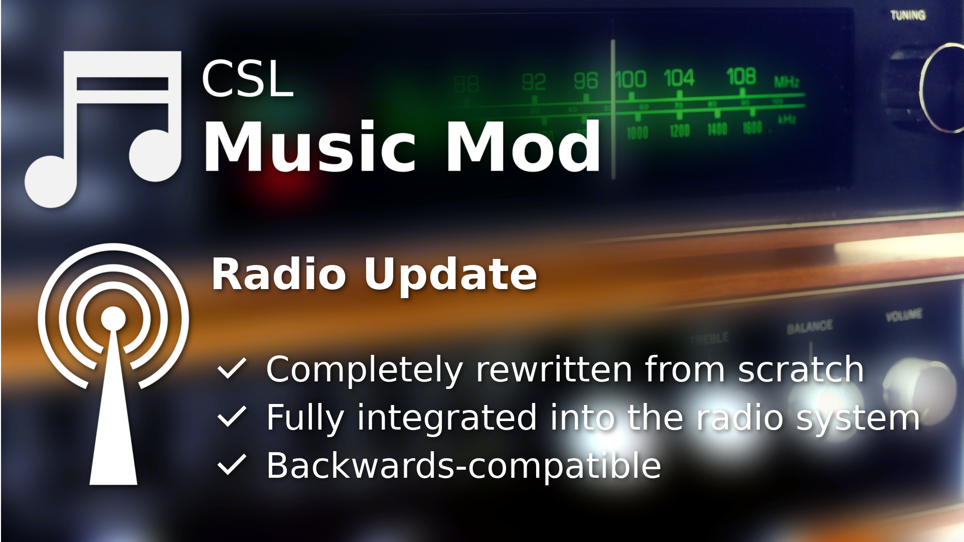 - Backwards-compatible to old CSL Music Mod versions and old music packs