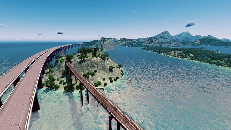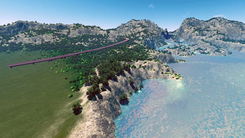 This map was designed with the expectation of expansion. Cthulhu Coast acts as a starting point for future development by terraforming to create a vast original landscape that grows with the city. It is intended to be used with mods in mind but the highways both reach the starting grid.