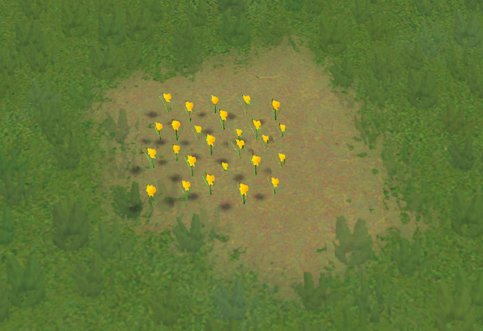 A group of daffodils. This asset is placeable anywhere in-game like a tree and can be found in the trees menu.