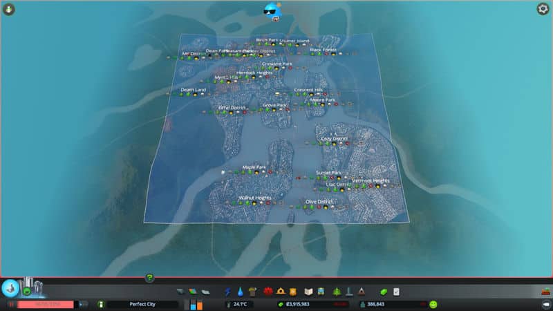 I tried different street patterns, doing my best to avoid grid, which is consider as boring and unrealism. The “highrise ban” policy is enabled on suburbs, just make them looks more realism.