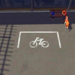 自転車駐輪場の路面標識です。地面に地形に沿ったデカールとして貼り付けられます。