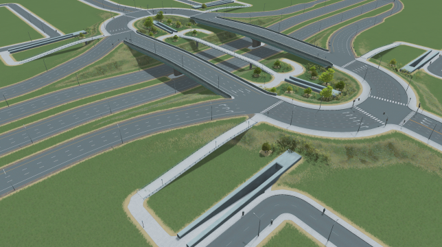 This roundabout interchange can characteristically move a lot of traffic around until suddenly there is quite too much to handle, messing around with traffic lights can help if it comes to a halt and it might have been a bad idea to start this description of the thing’s bad qualities but the real deal is the cheap way it offers you lots of capacity for cheap.