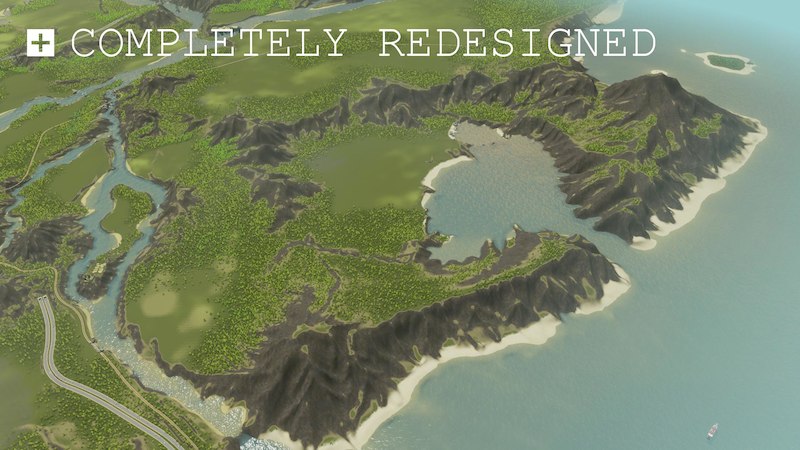 The map is meant to suit your own playstyle, to expand your city through mountain passes, along the sweeping plains or carved into the coastline – including waterfalls, working hydroelectric dam locations, reworked highways, resources, ship and plane connections.