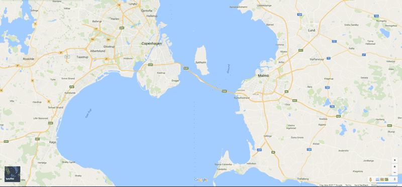 Denmark and Sweden map – Eastern Zealand, CPH and Western Sweden