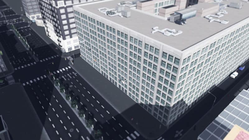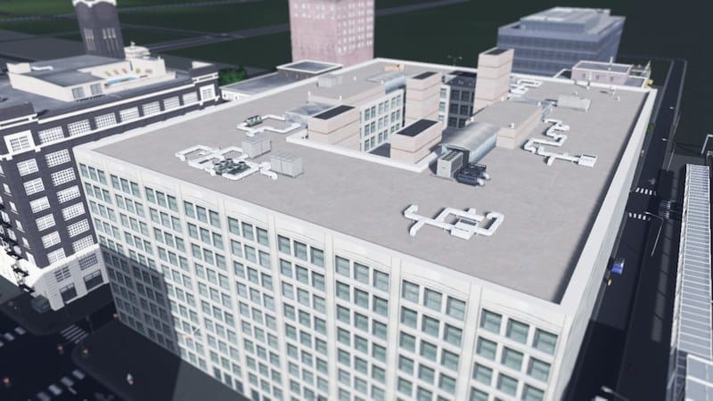 This is a 9×12 RICO-ready office building based on one in downtown Chicago. It’s over a century old, one of the oldest in the city. This is an example of the Chicago school style of architecture, with exterior masonry, reinforced concrete roof, and steel superstructure. Another noticeable feature is the “donut” shape, like a square ring around an inset atrium – there are many of these buildings stippled around the Loop. (If anybody knows the term for this shape, hit me up)