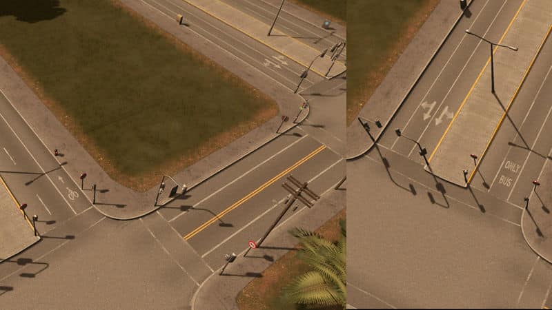 North American textures for Roads United. This pack contains textures for standard game networks and NExt additional networks, including new arrow, bike lane and bus lane decals and parking lane textures which can be toggled via the Roads United Core settings. These textures feature worn-out looking markings. Thanks to Killface for creating Roads United and the German texture pack which this pack is based on! Known issues: – 2-lane one way roads feature a double yellow line or no line at all because they use the same textures as the normal 2-lane road. – I decided not to have a yellow inner line on highways because the game occasionally flips textures in some segments, where the yellow line would show on the wrong side. – Arrows only pointing ahead have been completely disabled so they don’t show up on highways. – Some of the special bus stop markings (dashed side lines) don’t seem to work properly and only show the normal texture with a solid side line. – Some of the node textures on NExt networks can’t be fully customized so far and show odd ped crossings. – AVE-4 inner yellow lines had to go on the median curb for now beacuse the APR map can’t be changed yet. – Tram textures remain unchanged because I can’t test them without the Snowfall DLC. I’ll see if any of these issues can be sorted out in the future.