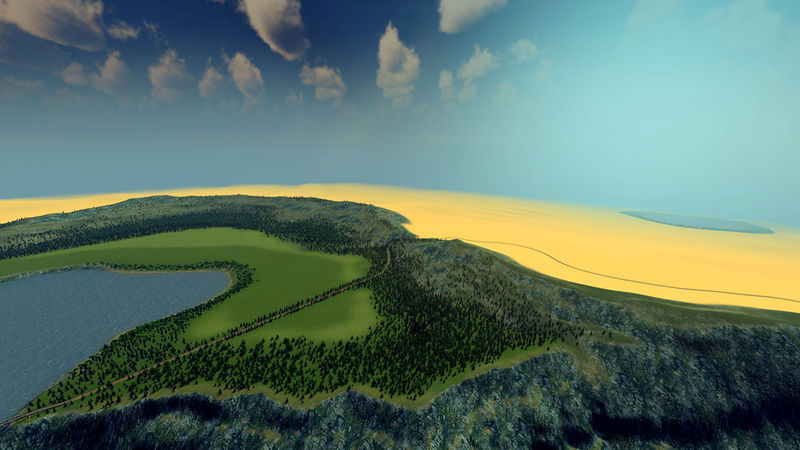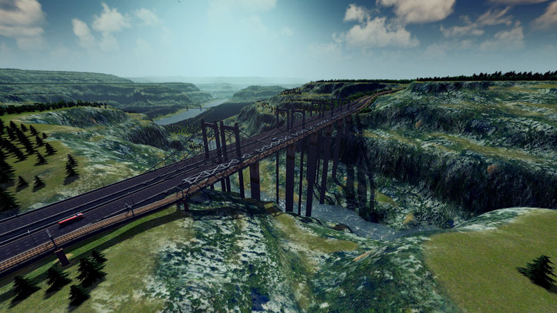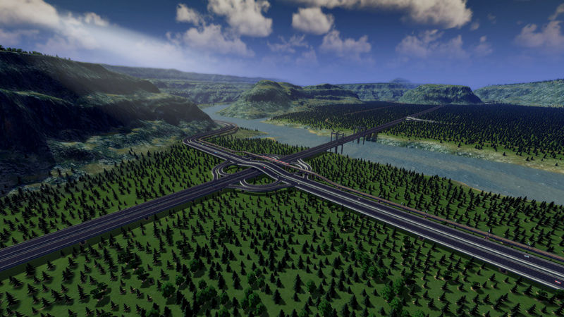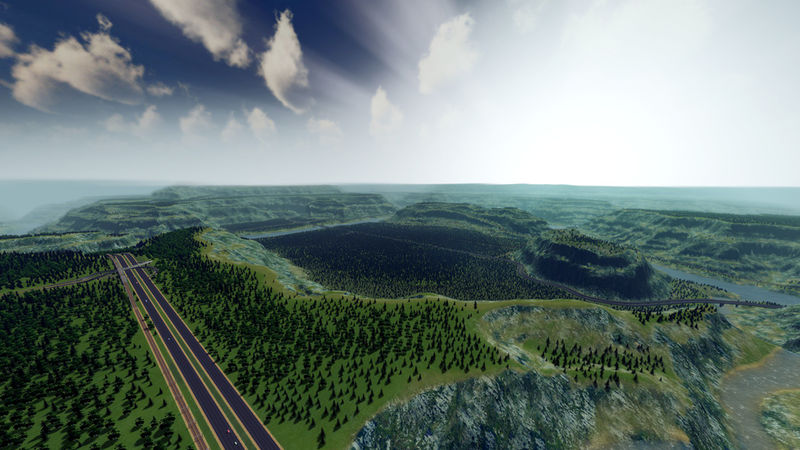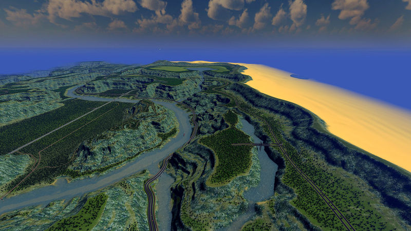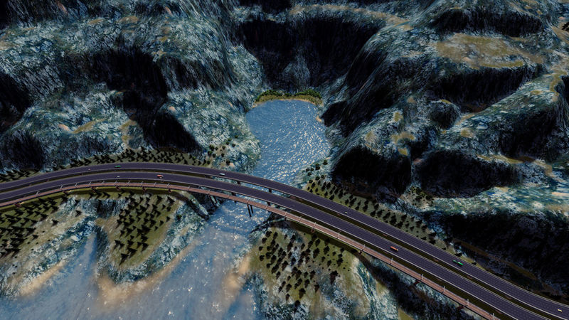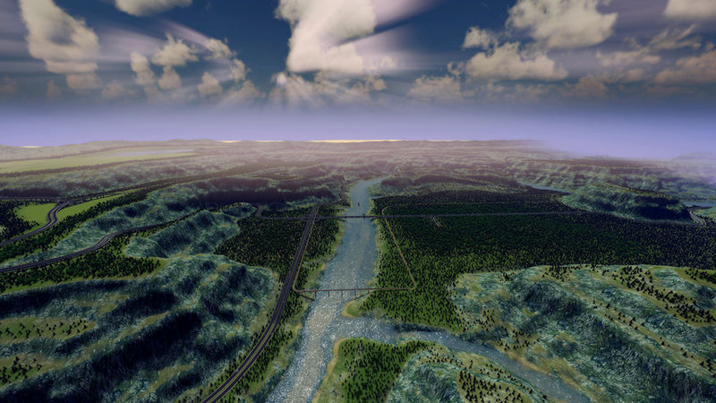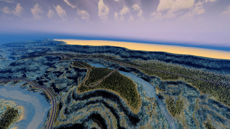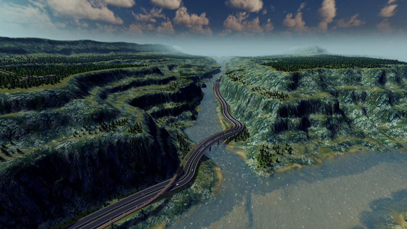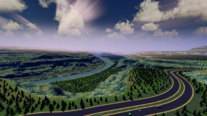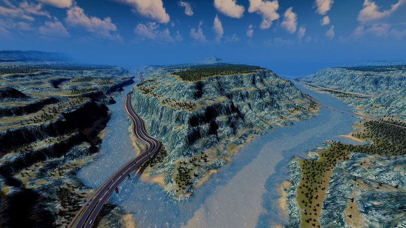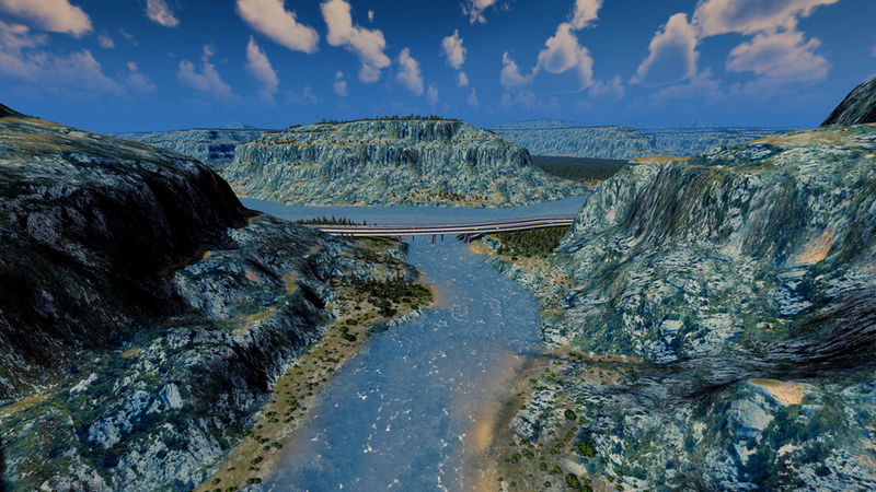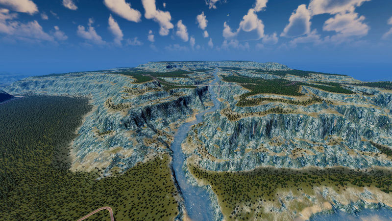 Devilspine Canyon is a map with many elevation challenges but also has a few areas for a rather large sprawl. it has beautiful vistas, waterfalls, creek beds, towering bridges, lush forest land, tons of resources, long winding freeways and rail, all built with painstaking detail.