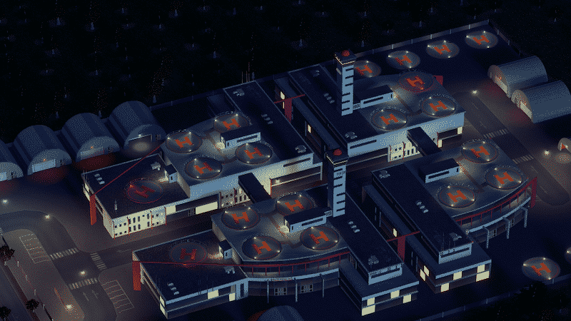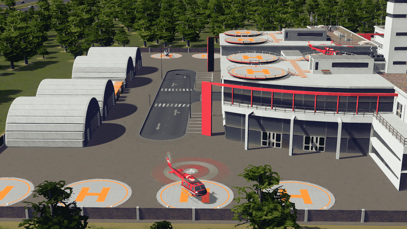 Each department has from 5 to 7 copter platforms, all landing areas are functional