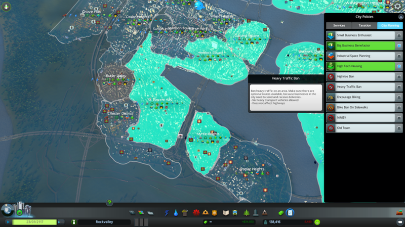 Highlights districts when a policy is hovered in side polices panel or a policy is clicked in bottom district policies panel.