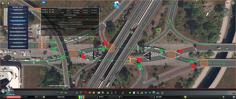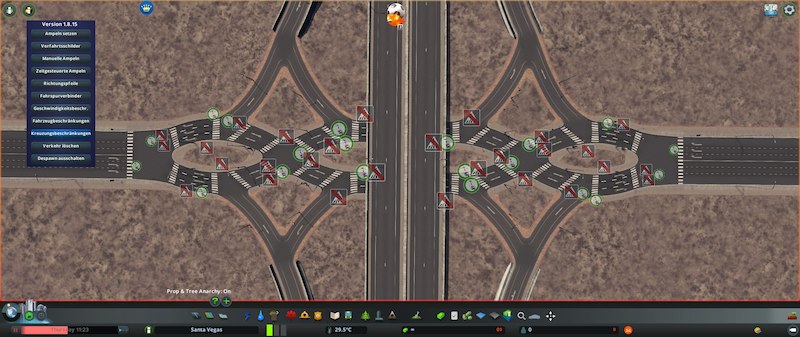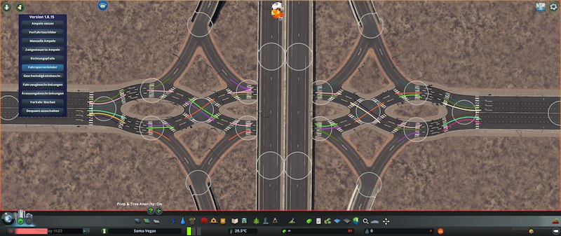 To make it work properly it’s recommended to use Traffic Manager President Edition. I added a few Pictures to show you what i think would be a goof configuration for the lane connector, the rules for the crossing and if necesseary some timed traffic lights. It all depends on your city and what you need for its individual amount of traffic.