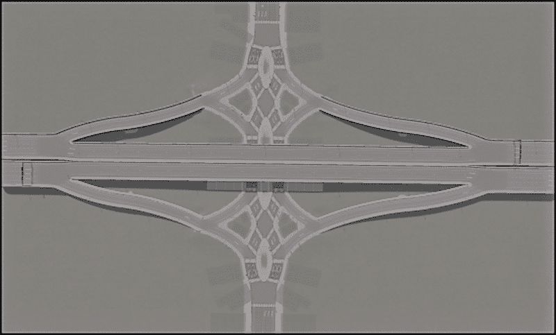 This is a basic model of DDI / Diverging Diamond Interchange. You can change whatever you want to make it fit to your cities needs like the number of lanes and so on.