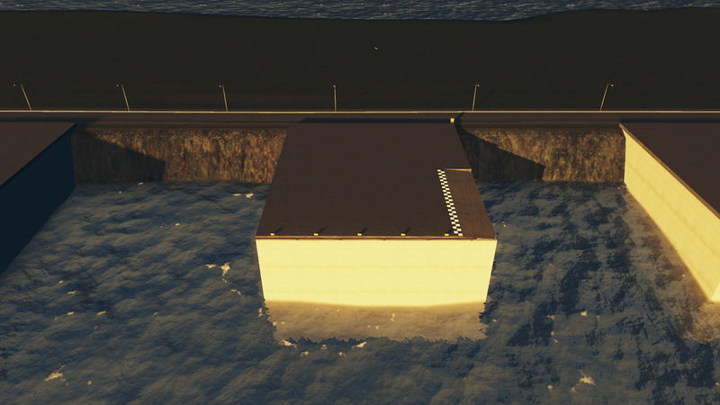 Semi-modular ship dock system. The segments have two different widths and two different lenghts.