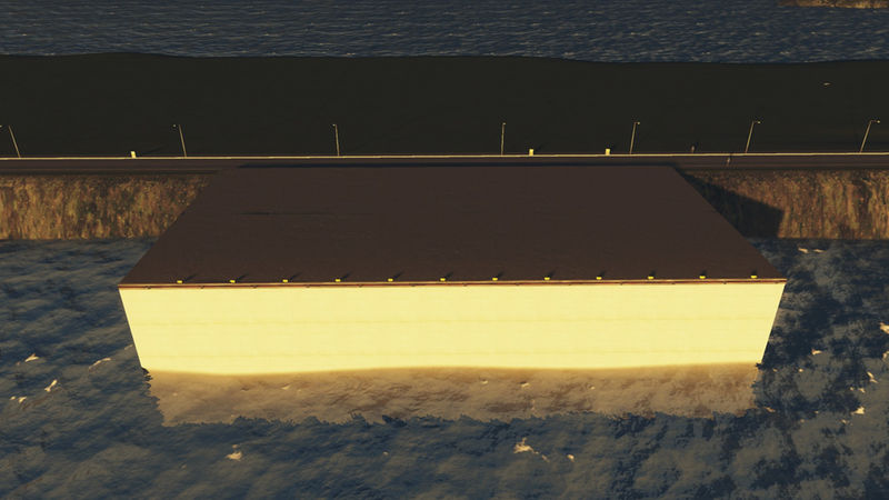 Semi-modular ship dock system. The segments have two different widths and two different lenghts.