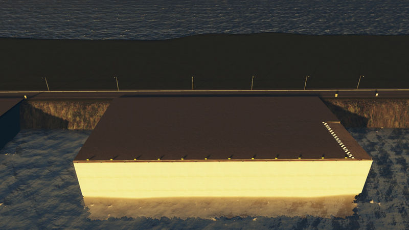 Semi-modular ship dock system. The segments have two different widths and two different lenghts.