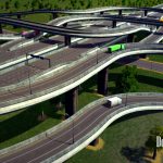 This is a very large interchange that takes up almost as much room as it can in the asset editor. The reason it is so large is because I like my roadway ramps sloped at realistic angles. None of this driving up and down 30-45 degree angle ramp nonsense. The side effect of nicely sloped ramps is that they take up more space and create large interchanges. Hopefully you like that style as well. If that’s not your bag… oh well.