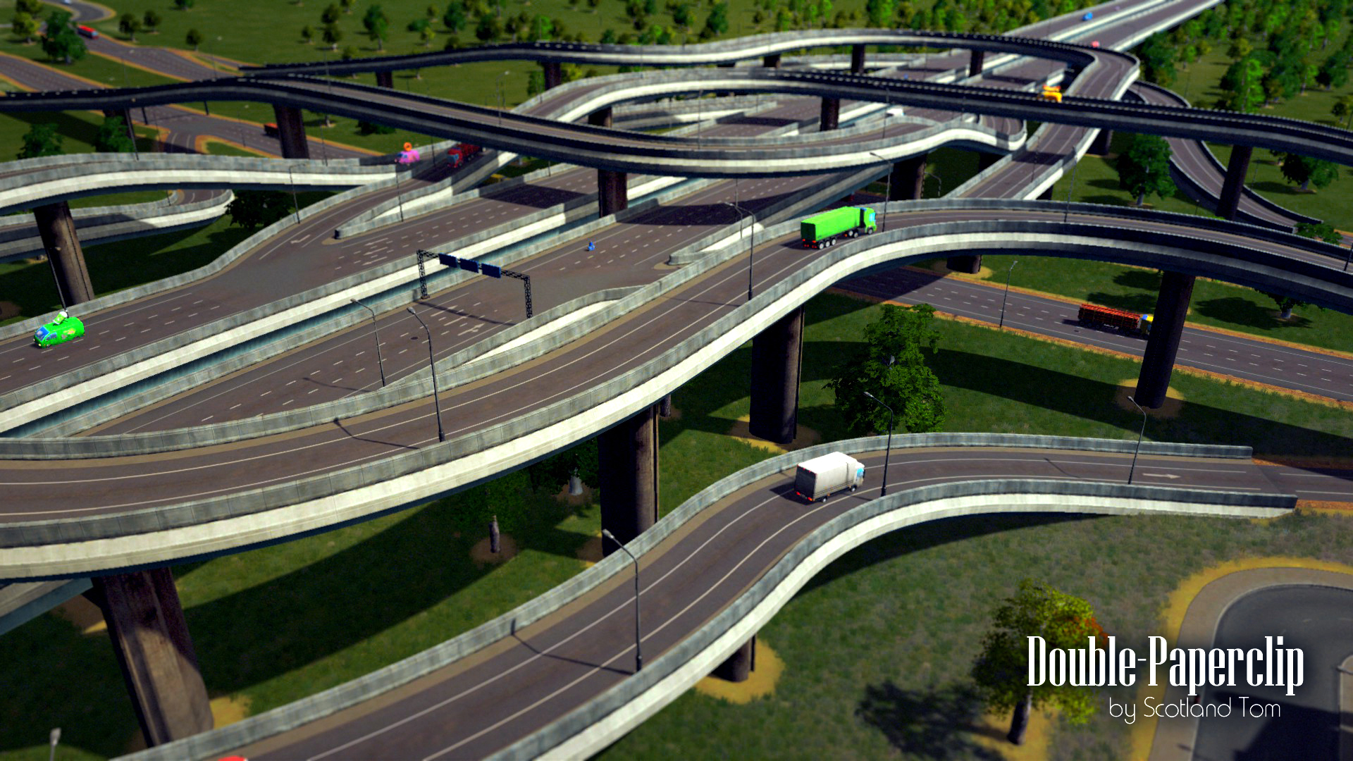 Here’s what I like to call the ‘Double-Paperclip’ Interchange. Why? Well, isn’t that what it looks like? This was used as the main starting connection in my Boulder Rapids map.
