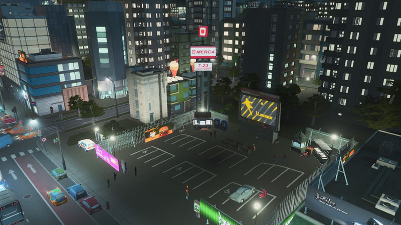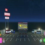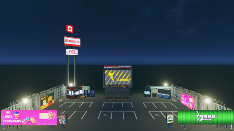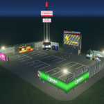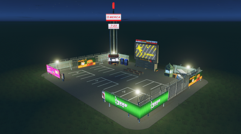 5×4. A drive-in movie lot with parking space for 18 vehicles. Cheap to maintain thanks to ad-revenue.