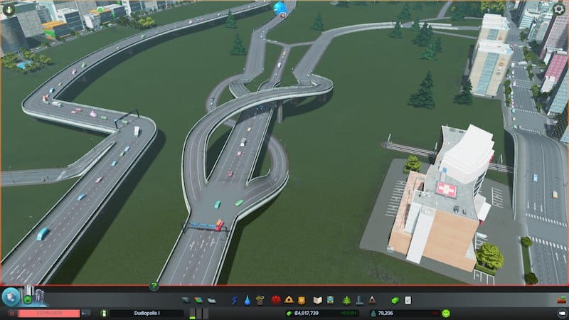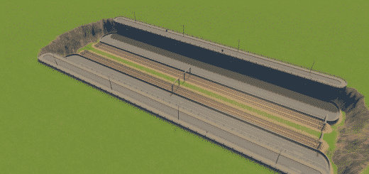 The aim of this was to make one highway split into two without the obsessive lane changing you usually get. For instance if you simply branch off a highway at an angle from an existing one then 2 out of 3 lanes have to change if they want off – it becomes an absolute mess! The mess is generally made even worse by the AI’s preference to change lane as early as it possible can…