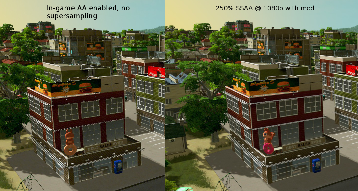 This mod enables rendering to a higher (or lower) internal resolution than the native resolution of the game. The benefits of this are different depending on your GPU.