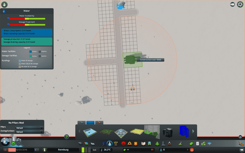 It does need to be connected to your city plumbing and can only be plopped within a roadside zonable area.