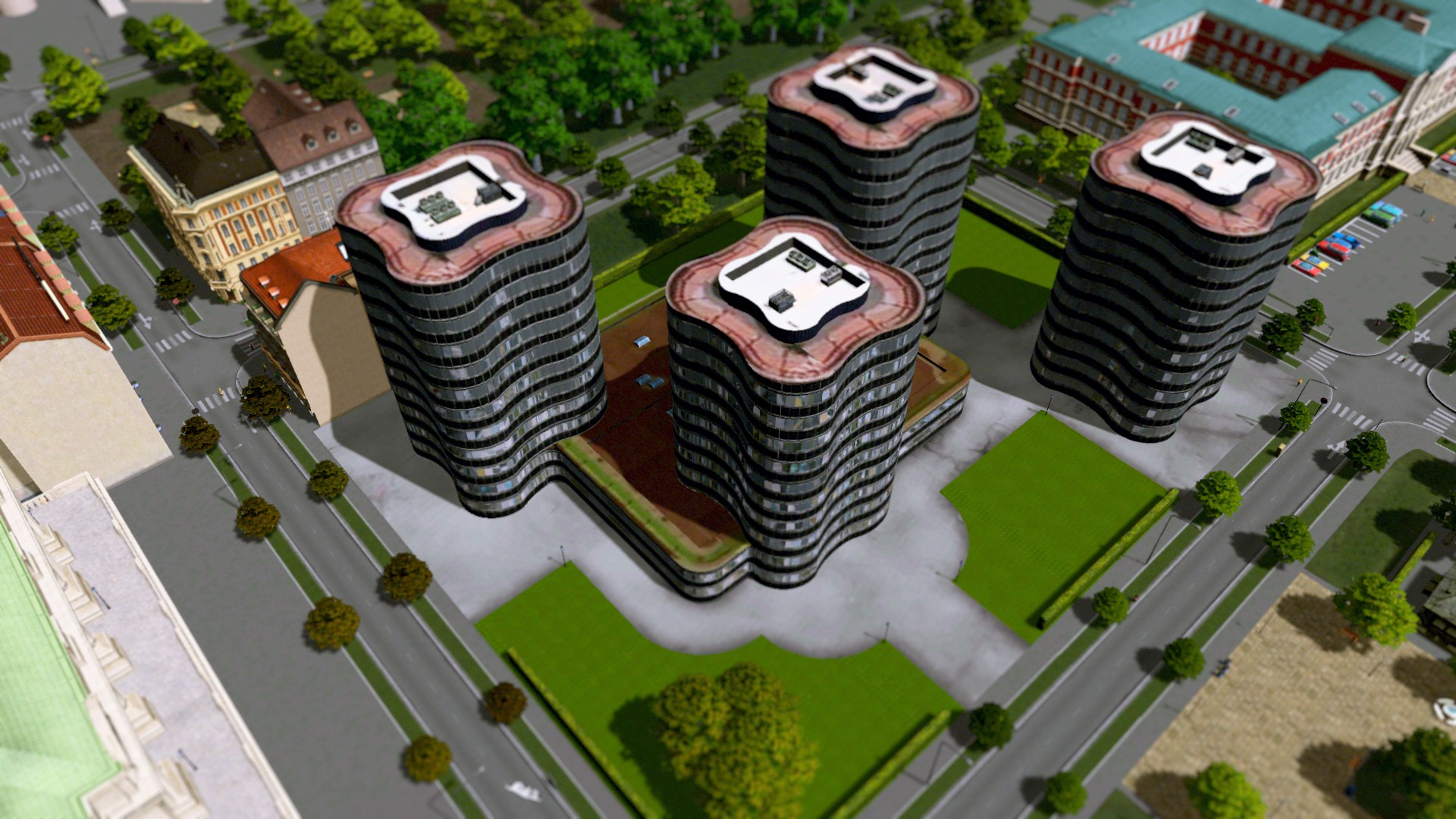 Barcelona’s Trade Buildings were built between 1966 and 1968 from a project drawn up by the architects Josep Antoni Coderch de Sentmenat and Manuel Valls i Vergés. They comprise four tall offices buildings with a ground plan in the shape of a lobulate cross. Two of the towers are 11 storeys high and the other two 13 storeys. Three of them are connected at ground-floor level. The undulating glass facades ensure the buildings blend in with their surroundings.
