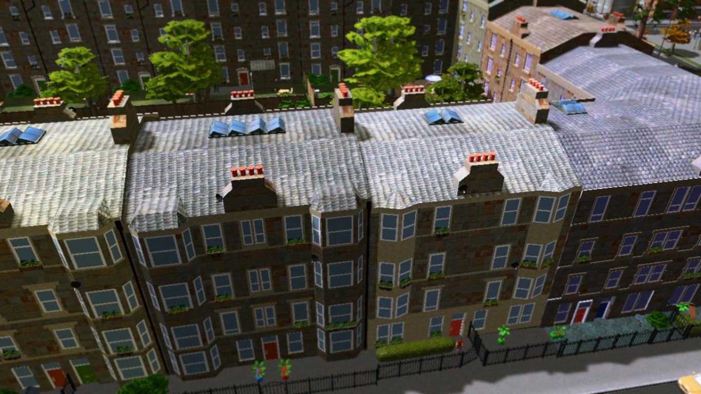 The ‘C’ version of the level 2 Edinburgh Row House. This one has partially formed bay windows, and a ground floor of smooth stone cladding.