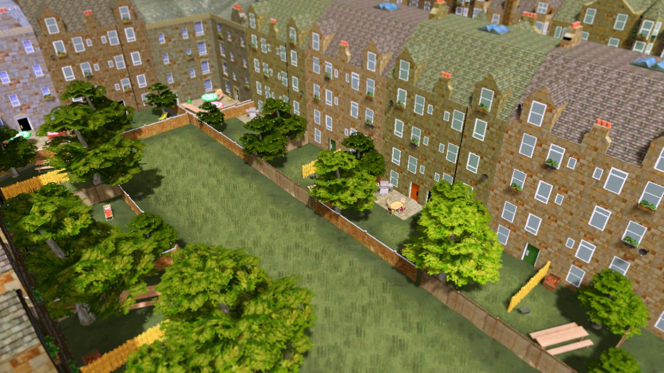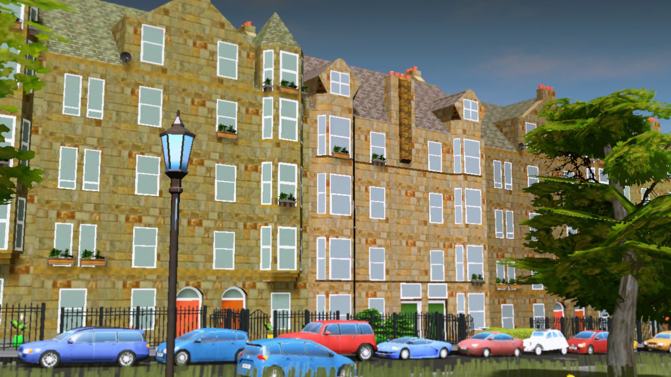 So here they are; Edinburgh style row houses for mid-level residents. These are a bit more interesting to look at than the level 1s, with bay windows, turrety bits and other fancy bits of pointy architecture. They are inspired mostly by the Bruntsfield area of Edinburgh. Shout out.